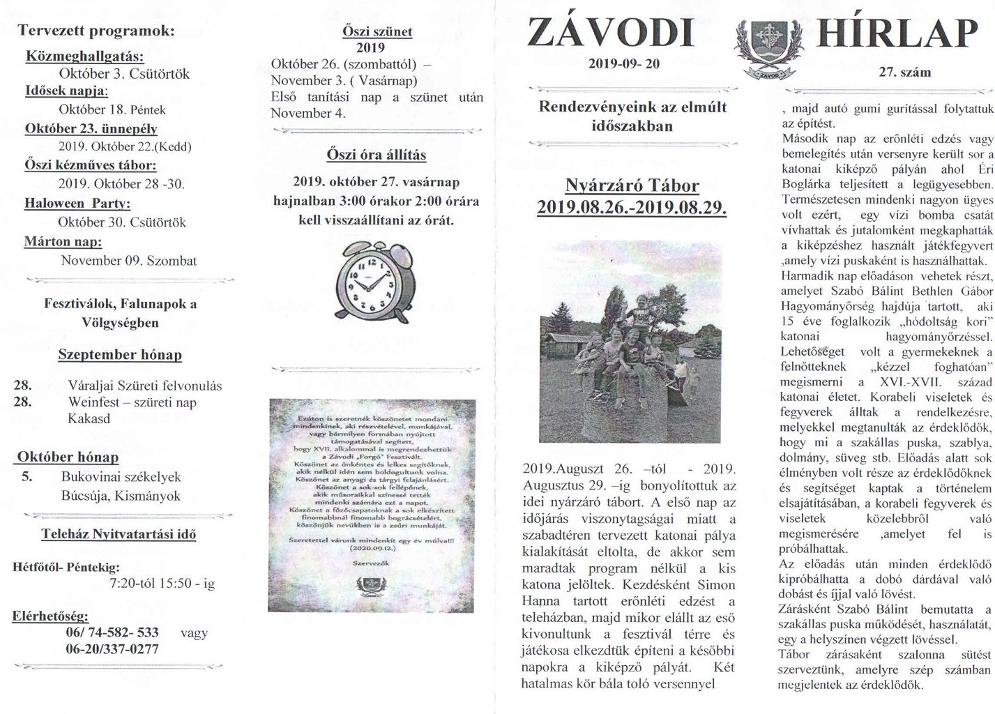 Augusztus-Szeptemberi hírlevél 27.szám