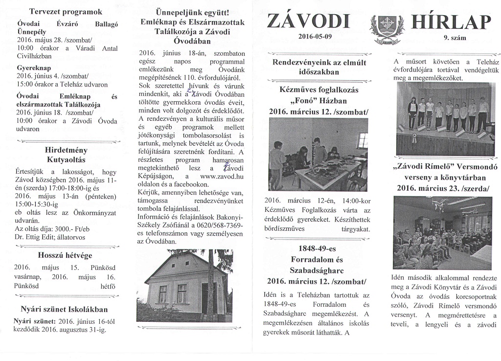 Február-Márciusi hírlevél 9.szám