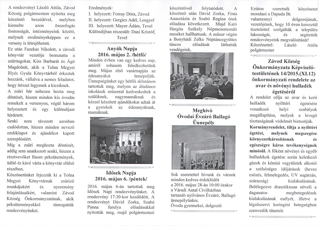 Májusi-Júniusi hírlevél 15. szám