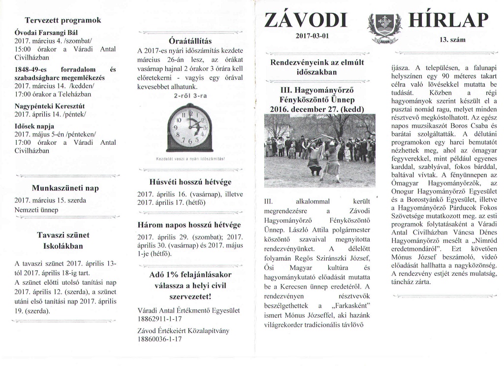 Januári-Februári hírlevél 13. szám