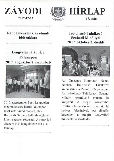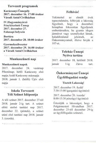 November-Decemberi hírlevél 17. szám