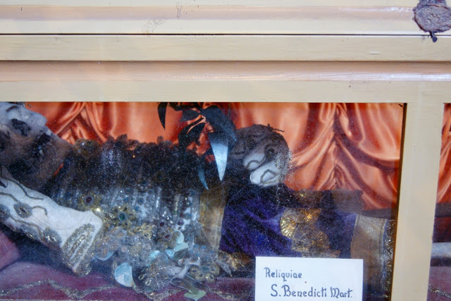 Szent Benedek vértanú üvegkoporsóban lévő ereklyéje