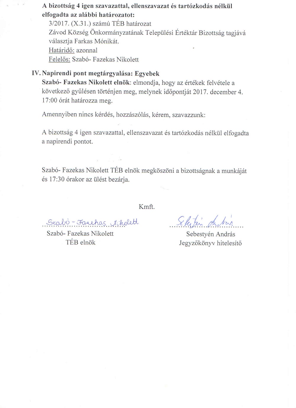 02 jan. Jegyzőkönyv 2017. október 31-én 16:30 órakor megtartott nyílt űléséről Írta: Super User. Beküldve: Önkormányzat.