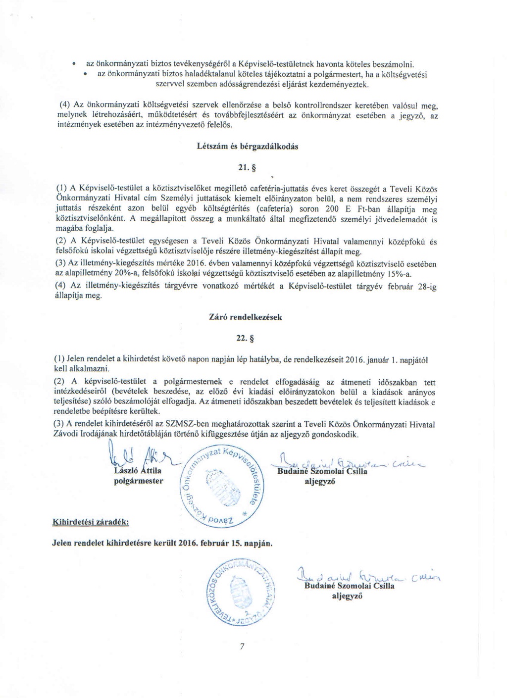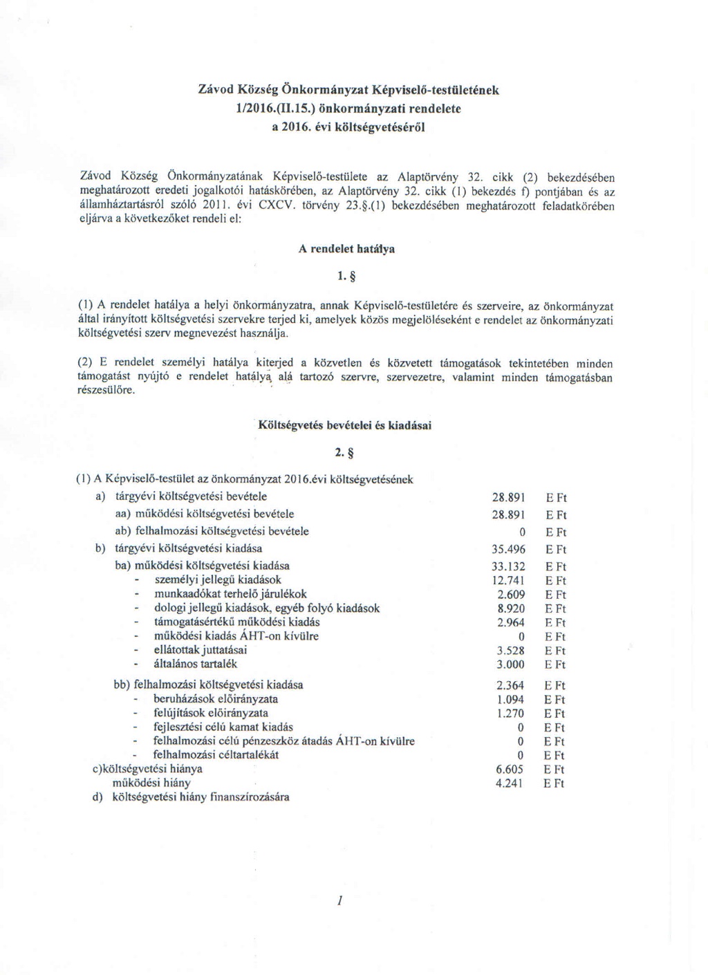 30 jan. 1/2016.(II.15.) Rendelet a 2016. évi költségvetésről Írta: Super User. Beküldve: Önkormányzat.